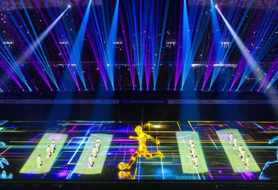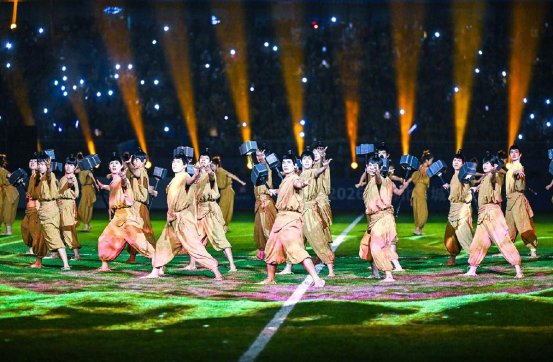 夜幕輕垂,開(kāi)幕式以青銅鼎為視覺(jué)核心,將黃石三千年青銅文脈與足球激情相融。靜態(tài)的文藝展演底蘊(yùn)悠長(zhǎng),衣袂流轉(zhuǎn)間盡是“點(diǎn)石成金”的歷史厚重,與賽場(chǎng)外球迷的熱烈身影相映,靜中藏韻,美而不燥,每一處細(xì)節(jié)都彰顯著荊楚大地的文化底氣,這是一場(chǎng)光之盛宴,亦是一次影之舞蹈。