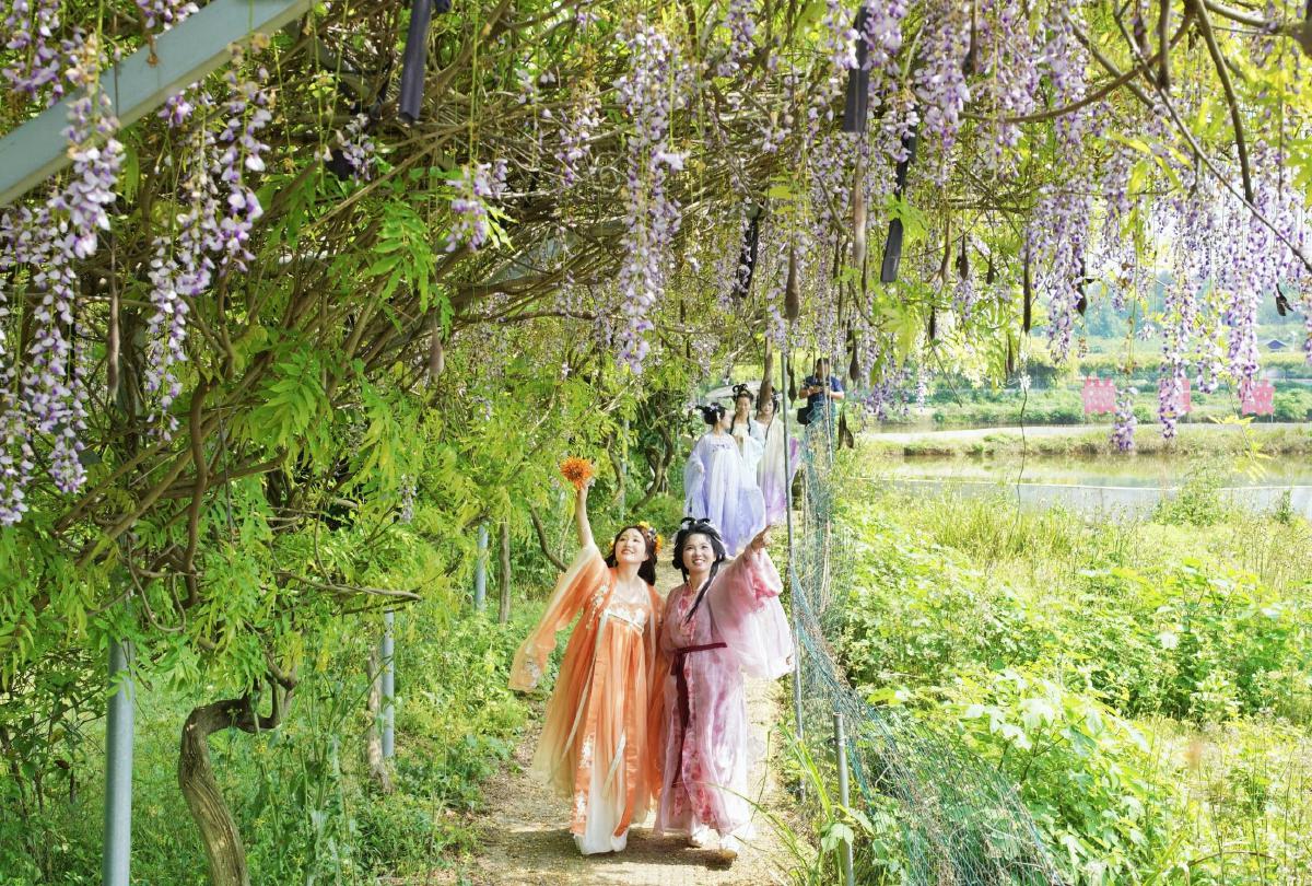 三華生態園千米紫藤花長廊正值盛放期