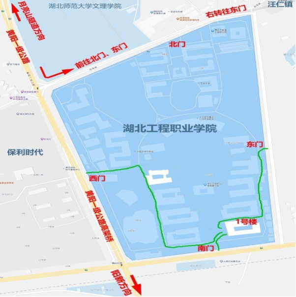 2.乘坐公交車的考生:到達(dá)保利時(shí)代站下車后從湖北工程職院西門(mén)進(jìn)入考點(diǎn),沿考場(chǎng)路線指示步行至1號(hào)樓,大約12分鐘。