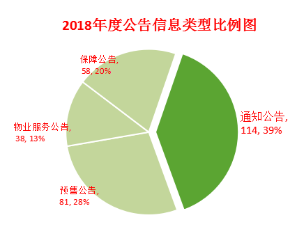 2018年,我局已主動公開政府信息703條,共發布各類公告信息369條,其中通知公告114條、預售公告81條、保障公告58條、物業服務公告38條。