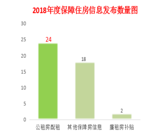 2018年共發布保障性住房信息44條,其中公租房配租情況24條,廉租房補貼發放信息2條,其他保障房信息18條。2018年共發布棚戶區改造信息33條,其中棚改文件信息發布22條,棚改會議信息發布5條,棚改成果信息6條。