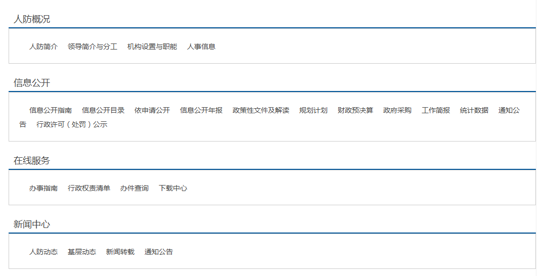 我辦政府信息公開主要以本級門戶網站為主,本級門戶網站中共設人防概況、信息公開、在線服務、新聞中心、公眾互動、防空防災、專題專欄等版塊。其中:信息公開子目錄包括信息公開指南和目錄,依申請公開、信息公開年報、政策性文件及解讀、規劃計劃、財政預決算、政府采購、工作簡報、統計數據、行政許可(處罰)公示等信息。
