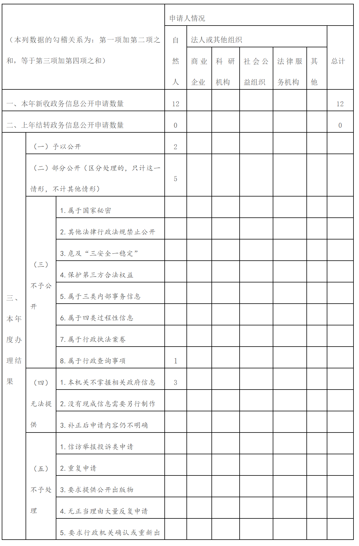 三、收到和處理政務信息公開申請情況