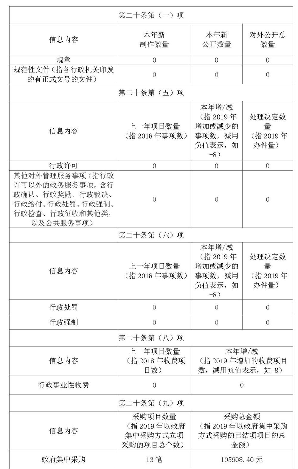 嚴格按照《條例》第二十條要求,在我中心門戶網站上設置了機構組織欄目,對機構改革后我單位的領導班子、機構設置、主要職能、辦公地點、聯系方式等信息進行了主動公開。機構改革后,我中心作為市政府直屬事業單位,行政職能和執法權力已整合到市文旅局,因此,本年度工作不涉及印發規范性文件、行政許可、其他對外管理服務、行政處罰、行政強制、行政事業性收費等事項。