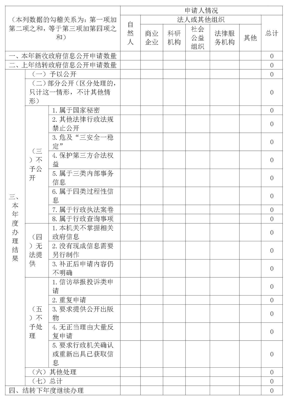 三、收到和處理政府信息公開申請情況