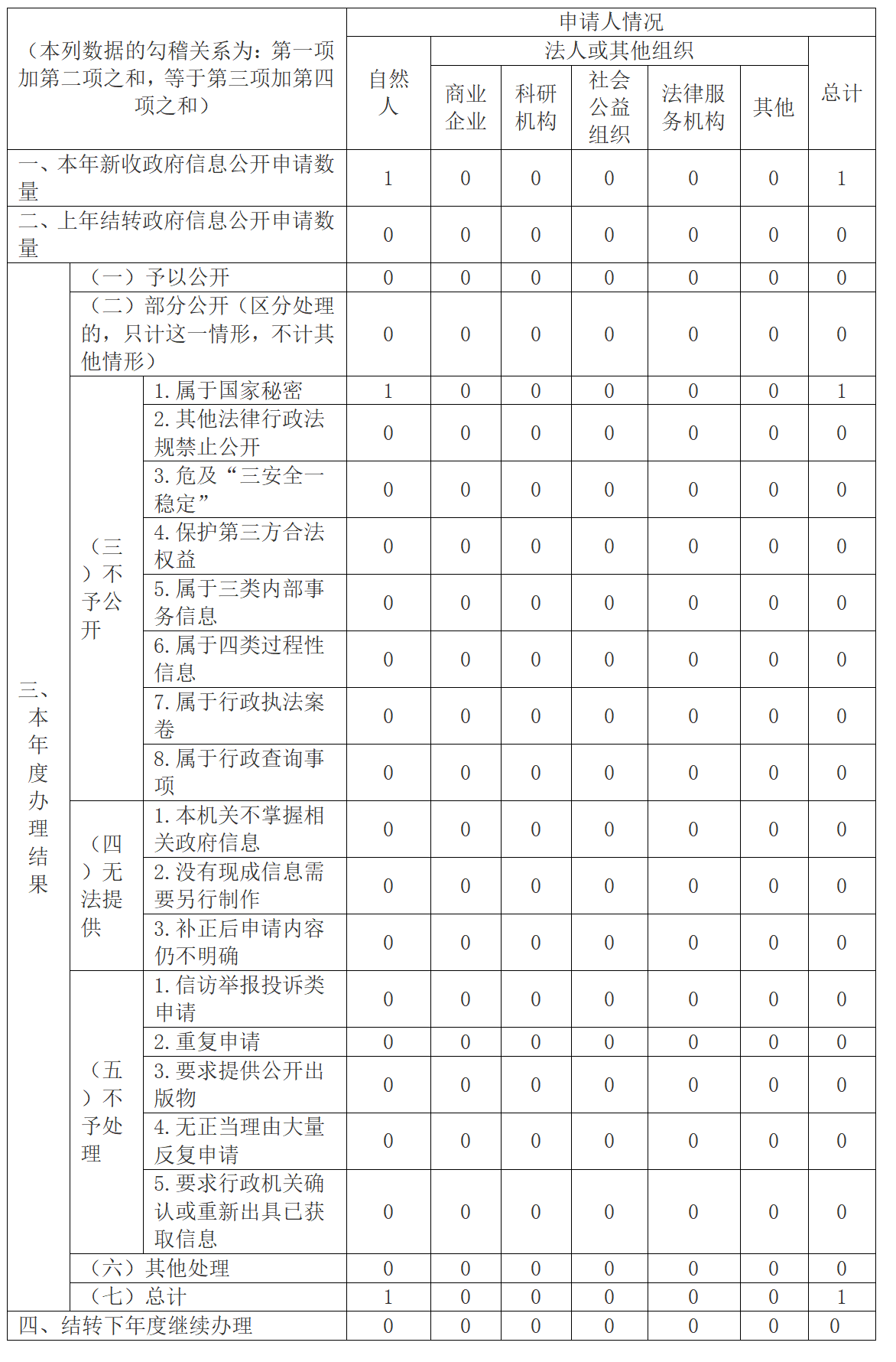 三、行政機關(guān)收到和處理信息公開申請情況
