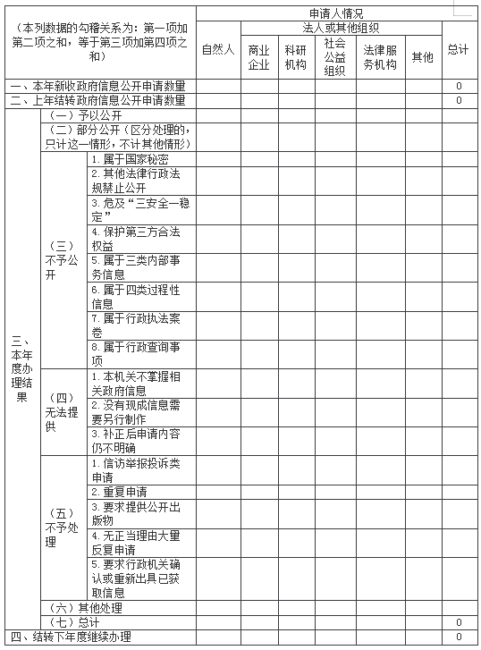 三、行政機關收到和處理政府信息公開申請情況