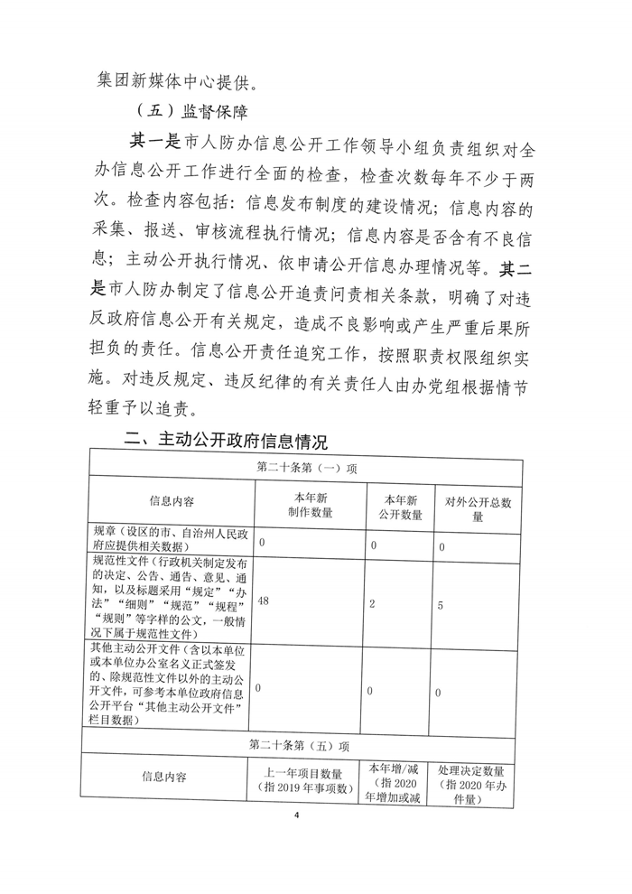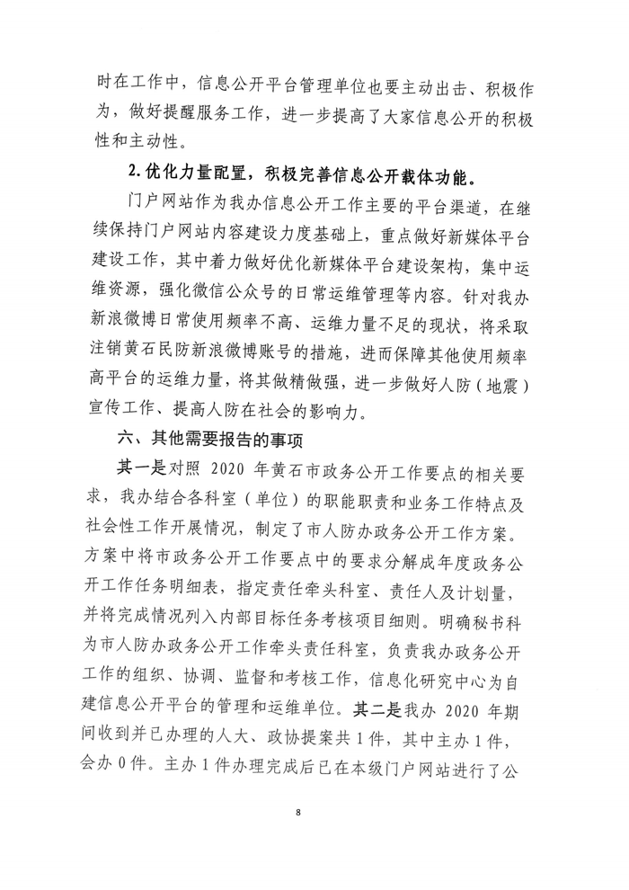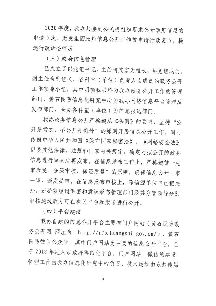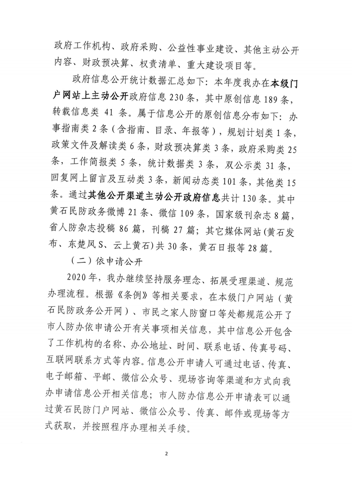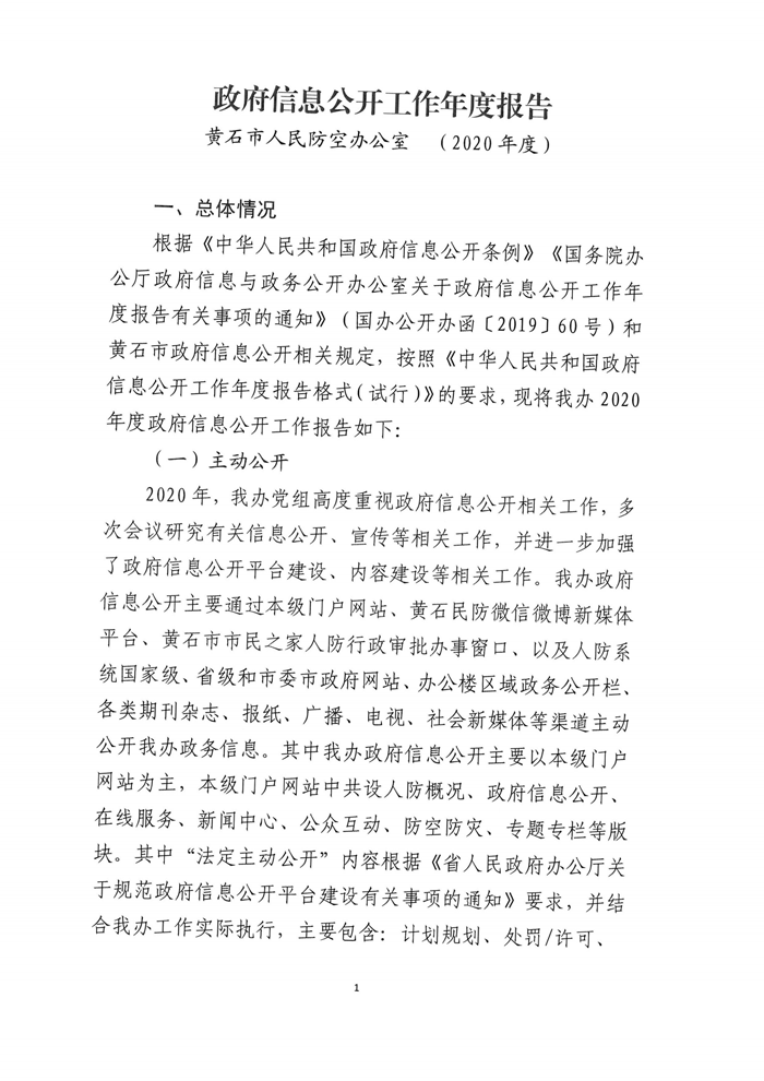 黃石市人民防空辦公室2020年度政府信息公開工作年度報告
