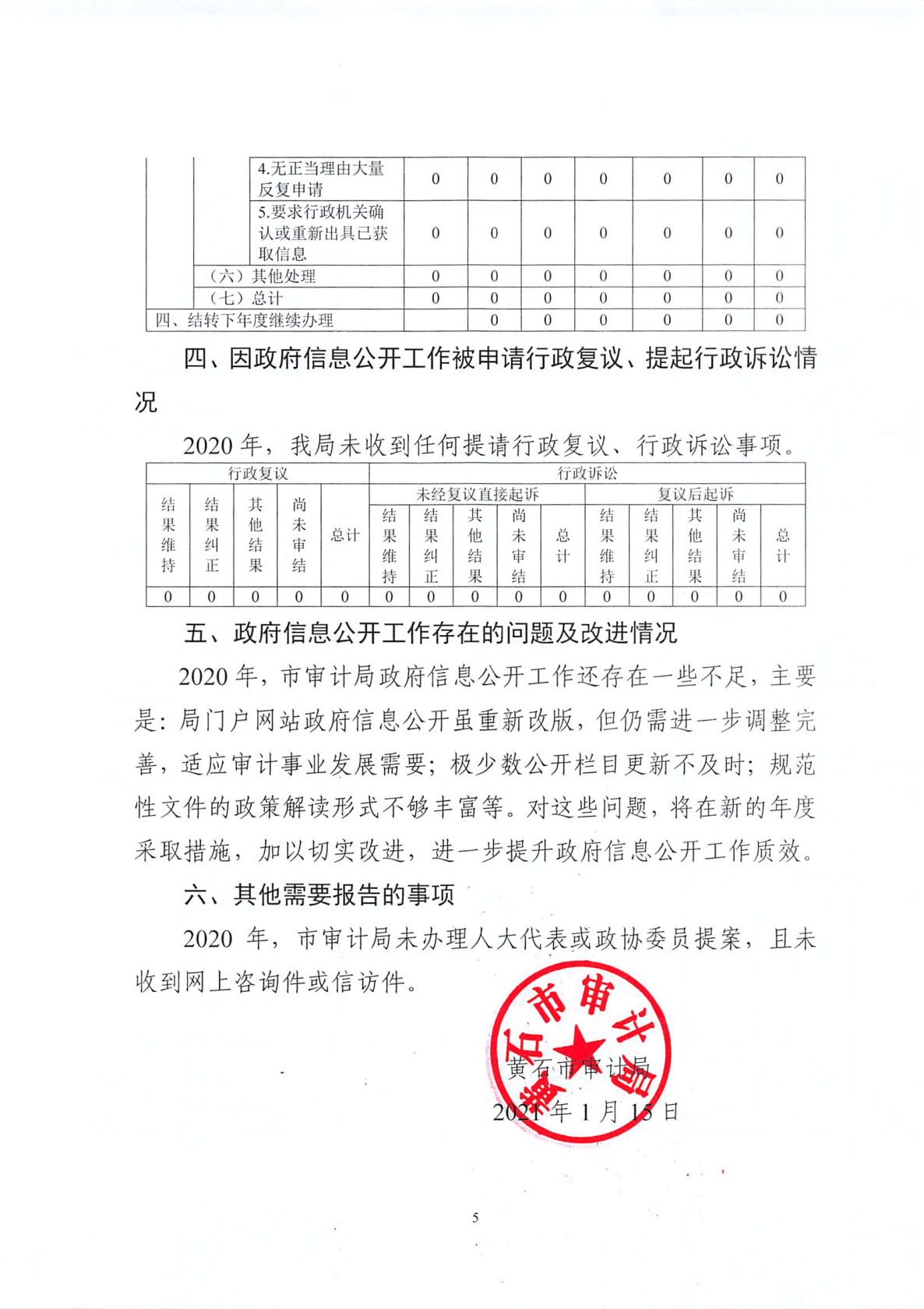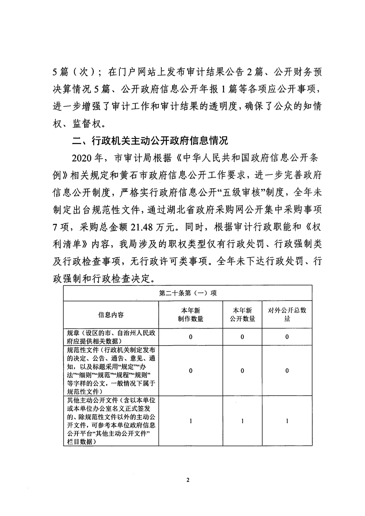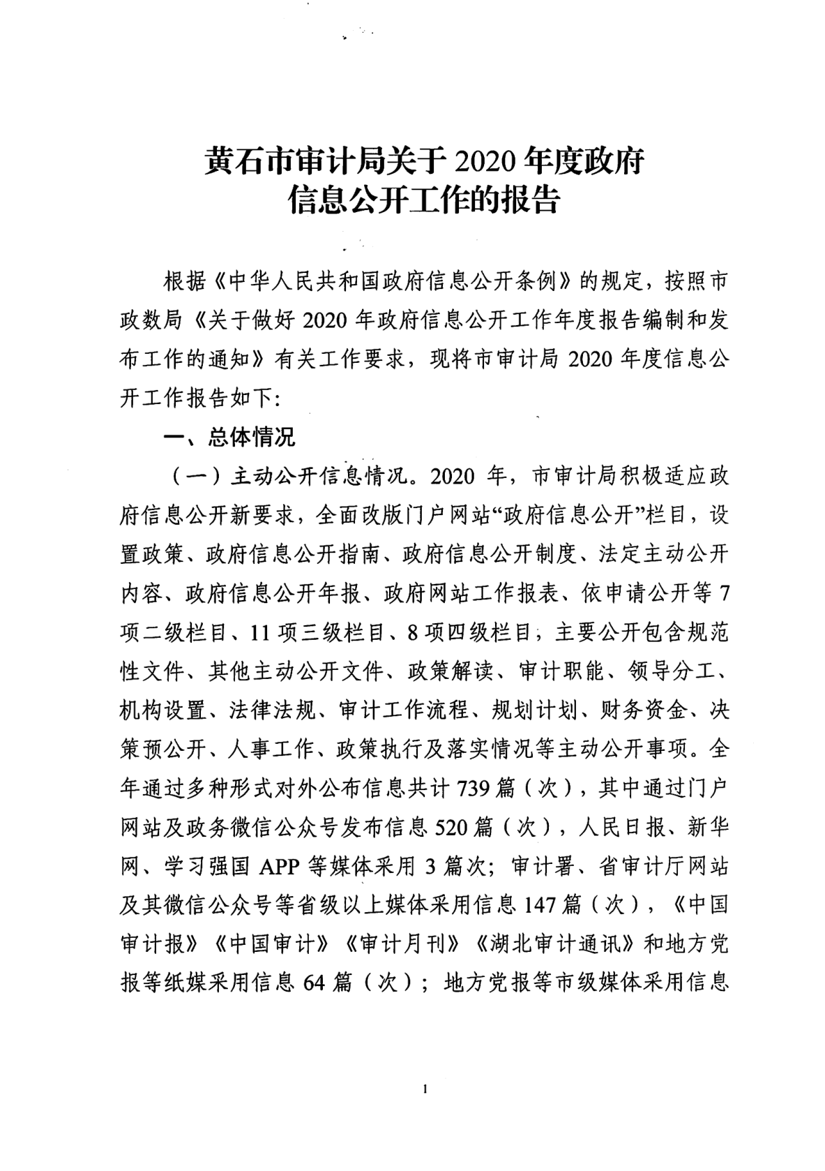 黃石市審計局關于2020年度政府信息公開工作的報告