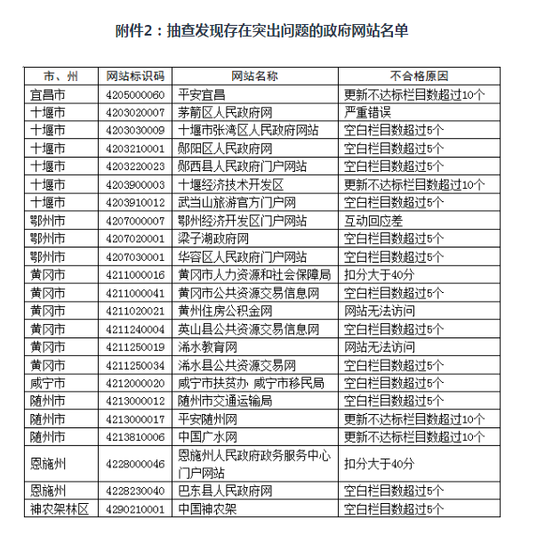 2.抽查發現存在突出問題的政府網站名單