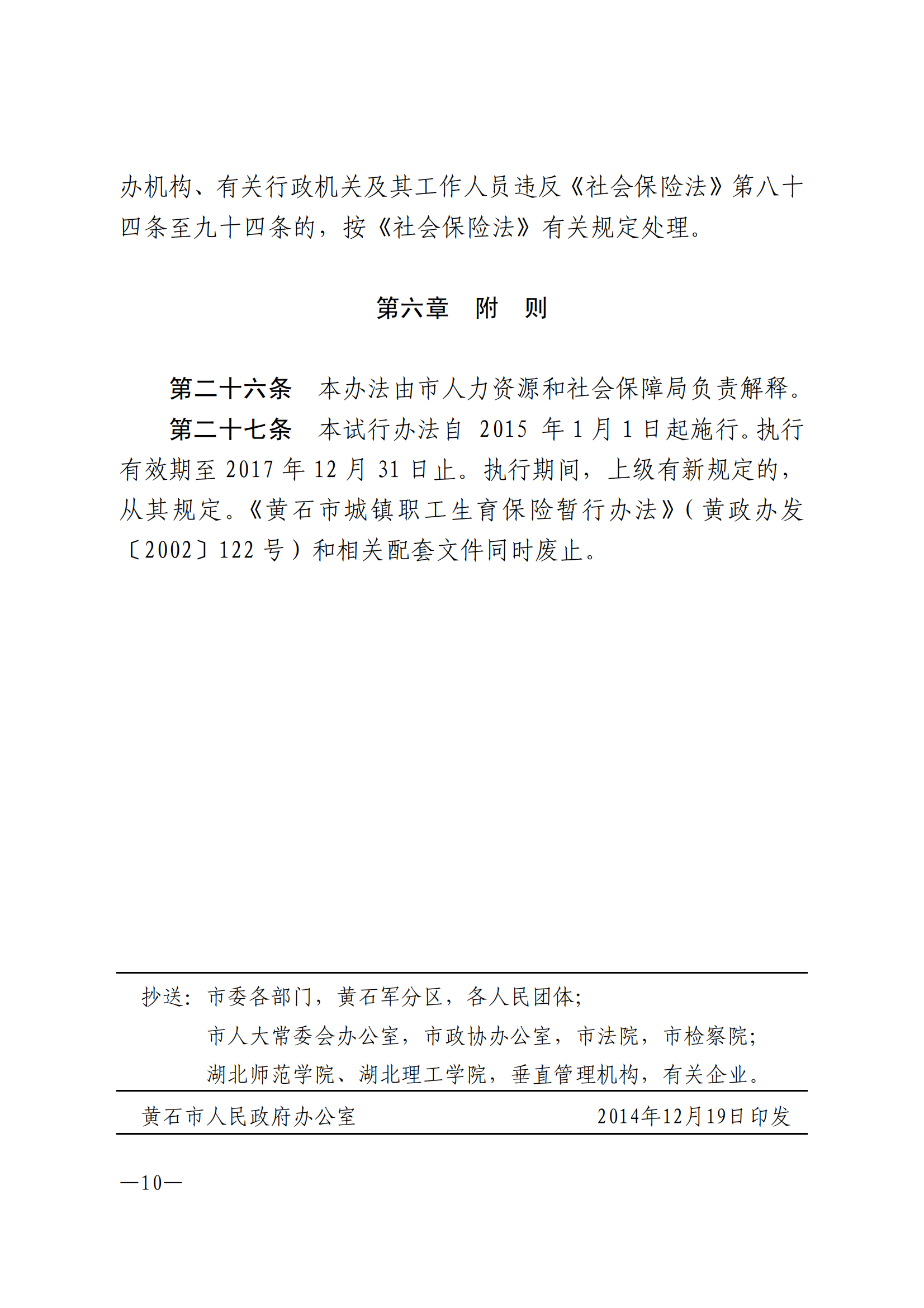 黃石市城鎮職工生育保險試行辦法