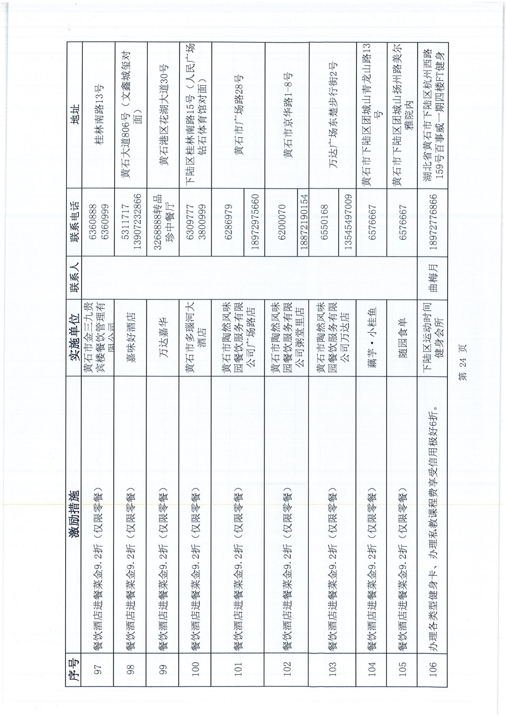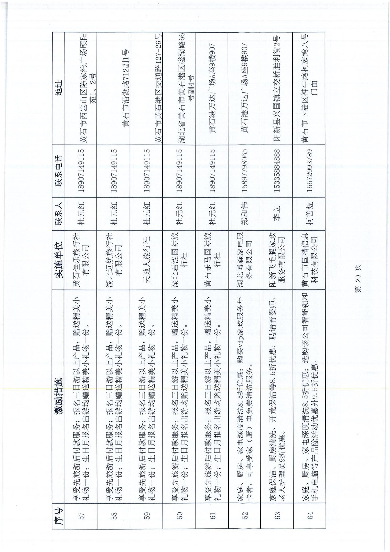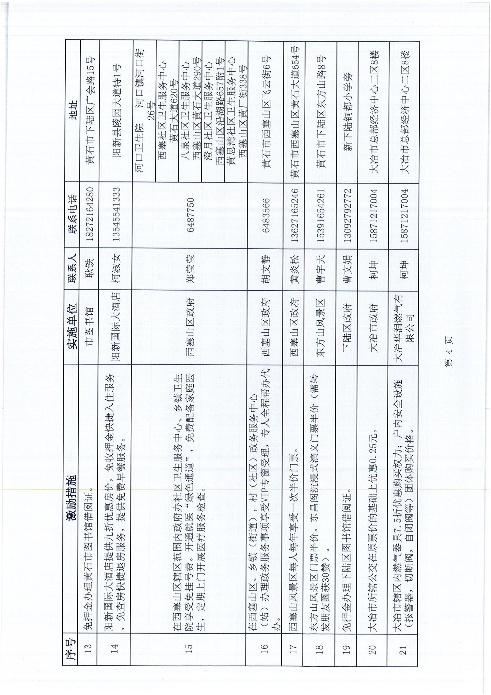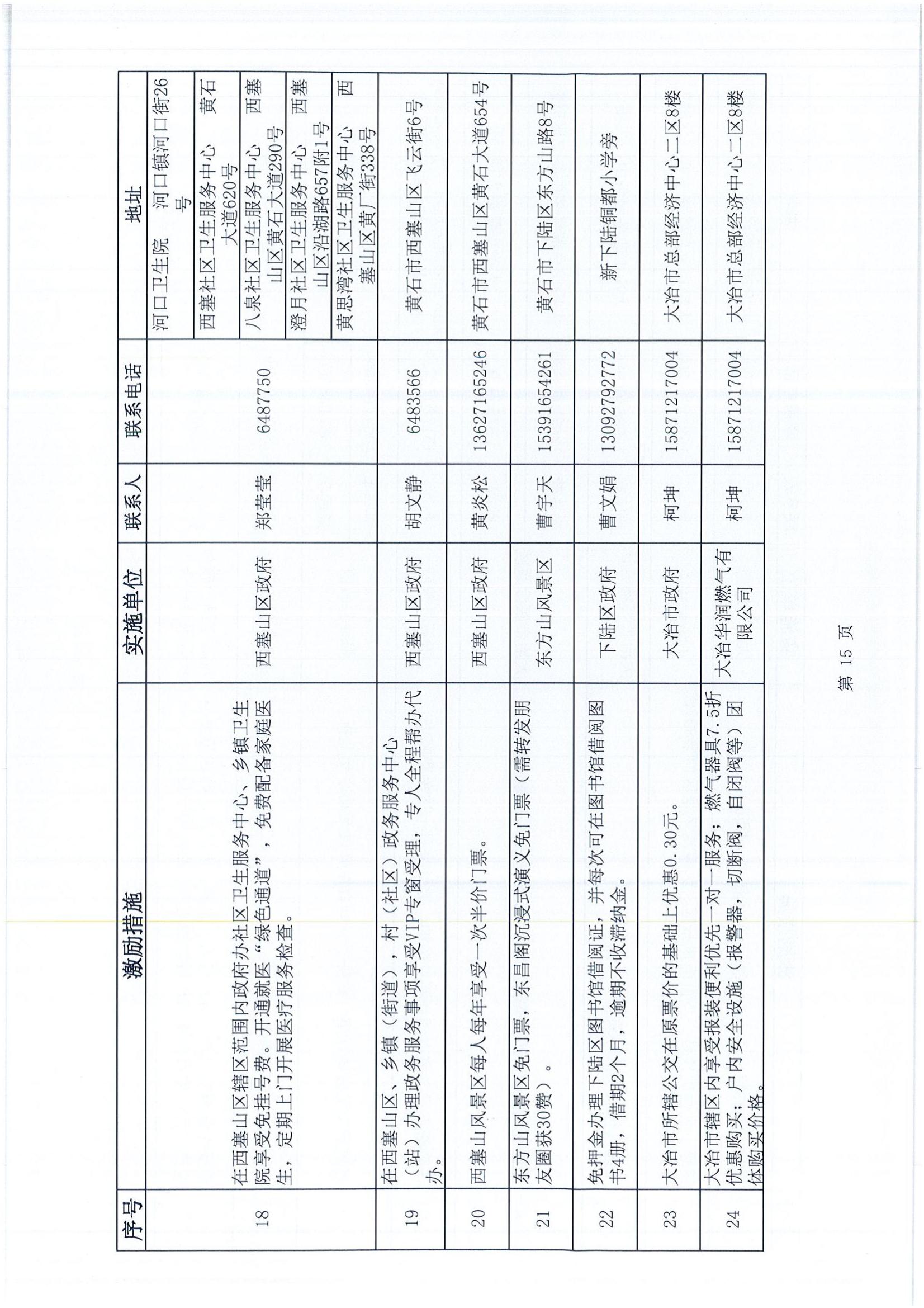 黃石市個人信用積分激勵措施清單